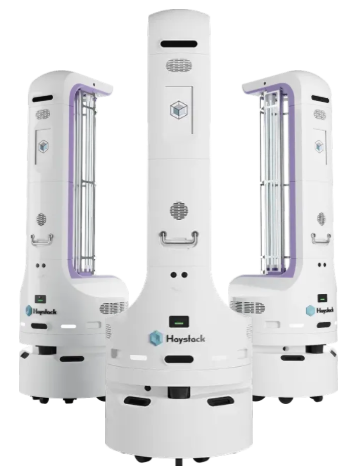 Autonomous Mobile AI Integrated UV‑C Disinfection Robot refers to mobile robots developed by Haystack Robotics, aimed at performing disinfection tasks in indoor environments using UV‑C light, with AI and robotics for automation. It comes under the category of filtration & disinfection innovations in India. These robots are meant to reduce infectious pathogens (viruses, bacteria, fungi, and spores) on surfaces and in air, without relying on chemical disinfectants. They are designed for hospitals, public spaces, offices, etc.