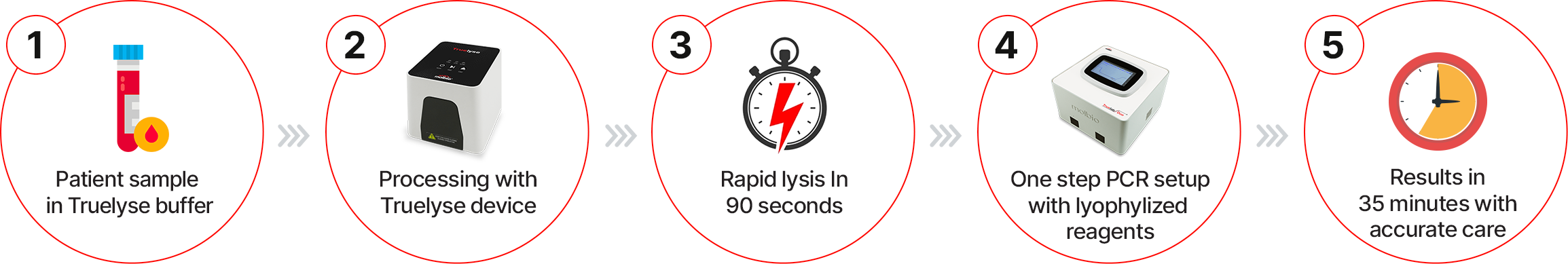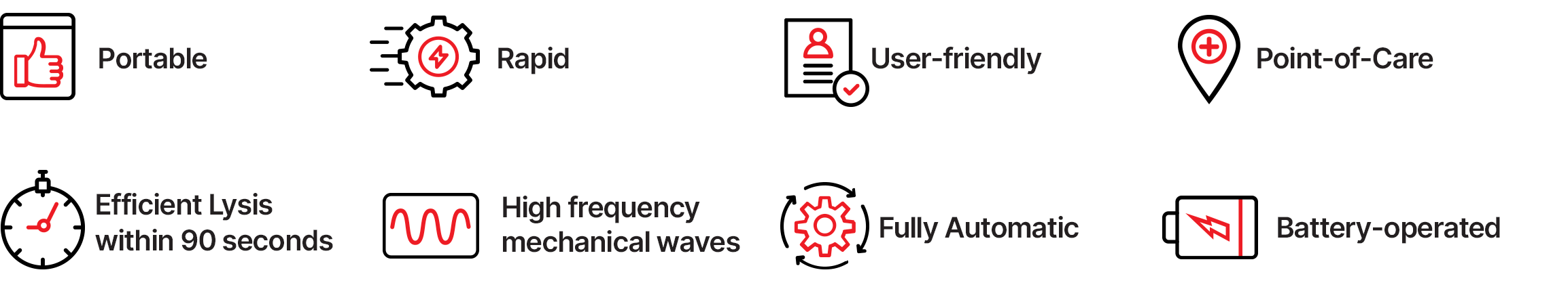 Unlike conventional workflows that depend on complex extraction reagents and time-intensive processing, Truelyse uses high-frequency mechanical agitation to break open bacterial cells in about 90 seconds. This process efficiently releases nucleic acids that can be directly amplified on Truenat MTB Ultima, enabling a seamless and accelerated path from sample collection to TB detection, cutting down the sample-to-result time in half.
